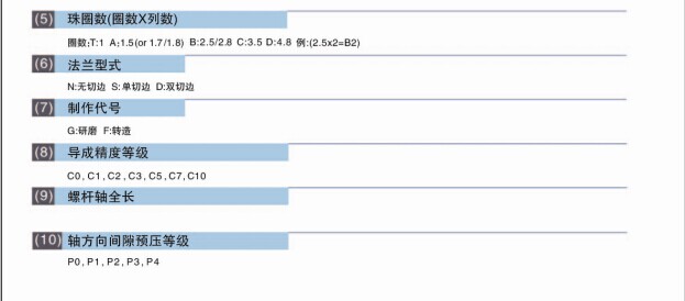 又于1个或者2个螺帽间做预压调整,予消除轴方向间隙,使其具有可符合使用条件的适当刚性。