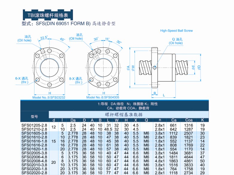 设备详细描述(台湾TBI滚珠丝杆SFS静音系列): |
