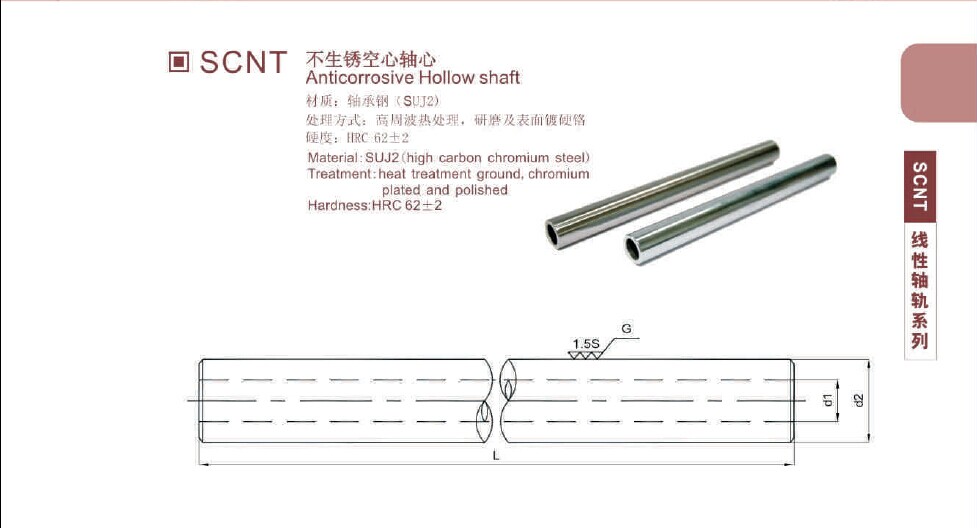 跟直线轴承配合使用,以达到直线运动效果。镀铬空心轴由于其空心结构上的特点,空心轴在很大程度上减轻了重量,并简化了结构,其内部适合于穿入测量电线,压缩空气,加入润滑油,或者用于机械人手臂。 |