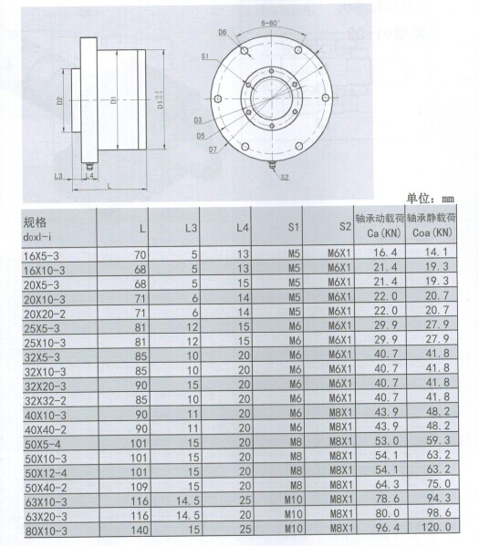 特征:体积小,精度高:螺母和支撑轴承一体成型,因此螺母体积小,支撑轴承之接触角为45o,可承受较大的轴向负荷,及组合高精度。 组装容易:只要用螺丝将螺母与轴承座锁定,即可简单获得螺母旋转式滚珠丝杠机构。 高进给:丝杠固定,因此没有丝杠旋转时的惯性力,用于细长比大的滚珠丝杠亦能高速进给,并可选用较小驱动力的马达。 高刚性:螺母旋转式滚珠丝杠之支撑轴承较一般丝杠之支撑轴承大,因此轴向刚性大幅提升。 低噪音:R1系列使用端盖循环,循环钢珠于螺母内部回流,即使高速回转噪音也较一般丝杠小。 組裝容易:只要用螺絲將螺帽與軸承座鎖定,即可簡單獲得螺帽旋轉式滾珠螺桿機構。 高進給:螺桿固定,因此沒有螺桿旋轉時的慣性力,用於細長比大的滾珠螺桿亦能高速進給,並可選用較小驅動力的馬達。 高剛性:螺母旋转式滾珠螺桿之支撐軸承較一般螺桿之支撐軸承大,因此軸向剛性大幅提升。 低噪音:螺母旋转式滚珠丝杆使用端蓋循環,循環鋼珠於螺帽內部迴流,即使高速迴轉噪音也較一般螺桿小。