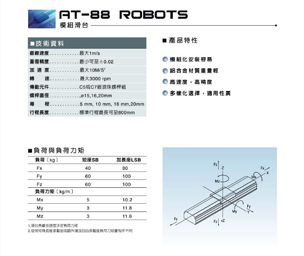 设备详细描述(AT88滚珠丝杆系列滑台模组): |