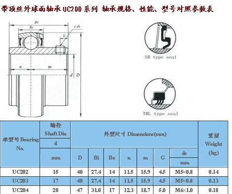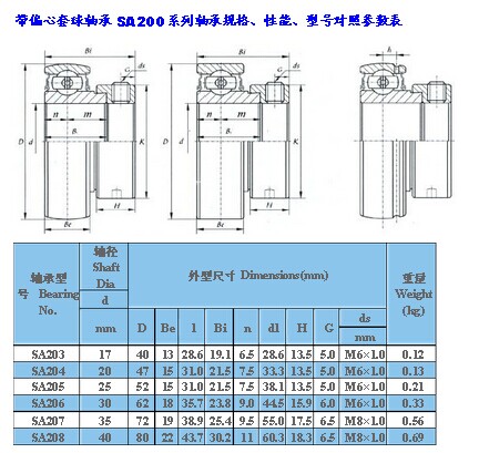 虽然它的基本性能与深沟球轴承应是相似的,但是由于这种轴承大都应用在比较粗糙的机械中,安装定位不够精确,轴与座孔的轴线对中性差,或是轴长而挠度大等的情况下,而且轴承本身精度也不够高,有的结构也较粗糙,因此共性能的实际表现比较相同规格的深沟球轴承要打上相当的折扣。例如带顶丝的外球面球轴承应用于刚度差挠度大的通轴,这种轴承两面带密封圈,能严密防止污物侵入,出厂时巳装填适量的润滑剂,安装前不需清洗,不需补加润滑剂,轴承内圈凸出端上的顶丝螺钉在轴上紧固时.允许的轴向负荷不得超过额定动负荷的20%。