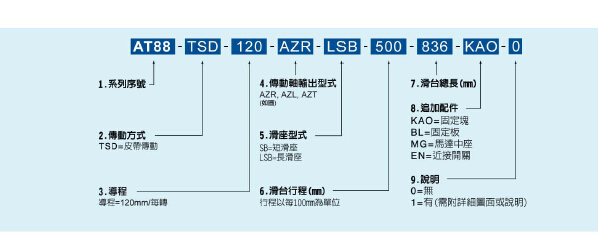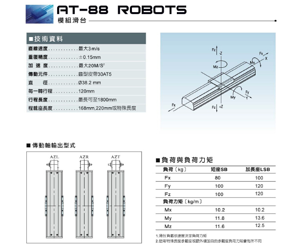设备详细描述(AT88同步带系列滑台模组): |